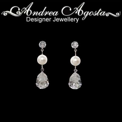Crystal and pearl earrings on a crystal stud